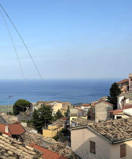 This beautiful house is located right at the beginning of the main street of the village, with a beautiful view over the square, the Corso, the mountains, and also the sea from the back side.